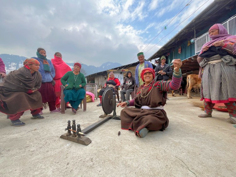We work to set up decentralised handmade production systems. After having worked in the Kullu Valley for over a decade, we are now expanding to the Kangra Valley to generate livelihoods for women artisans. We have started working in multiple artisan groups based in villages in Kangra valley. As a part of the initiative, we have been procuring wool from local herders and engaging with local spinners, dyers, knitters and weavers to train on specific aspects of their craft. Our work in the Kangra valley is generously supported by The Eicher Foundation. Our work has also led to livelihood generation and enhancement for local herders, from whom we have procured wool.